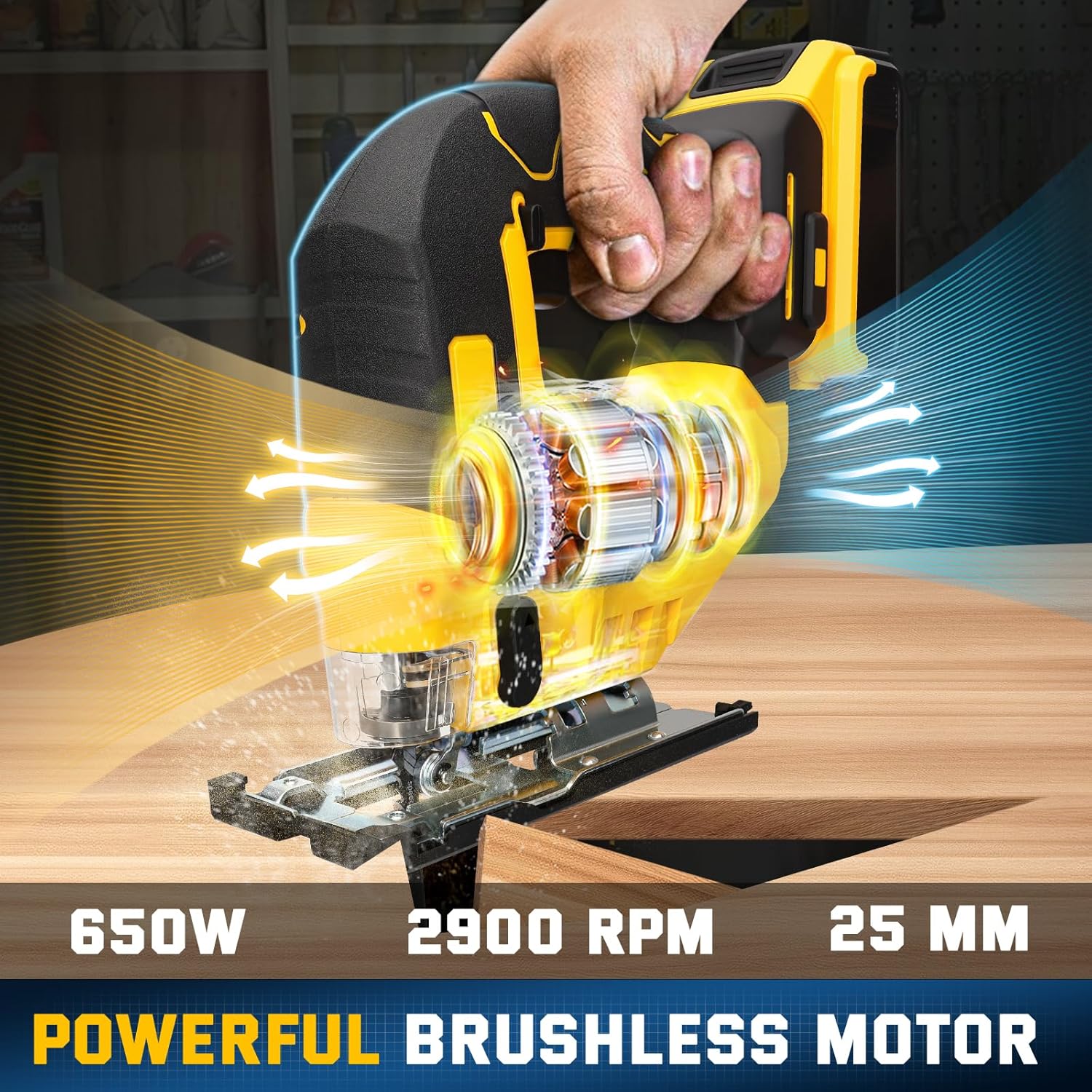 Cordless Jig Saw for DEWALT 20V MAX Battery, Brushless, 3000 RPM Variable Speed, 45° Bevel, 3 Orbital Modes, Includes Blades